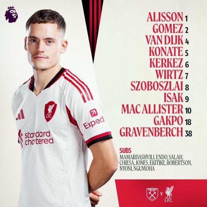 利物浦客战西汉姆联:维尔茨、伊萨克首发,萨拉赫替补